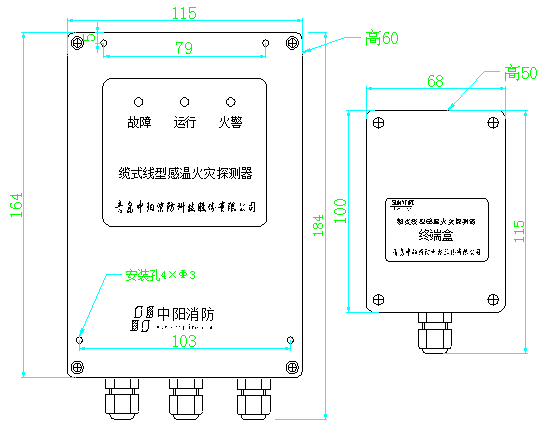 型 号 | 动作温度℃ | 探测器不动作温度℃ | 微电脑处理器、终端盒环境温度范围℃ |