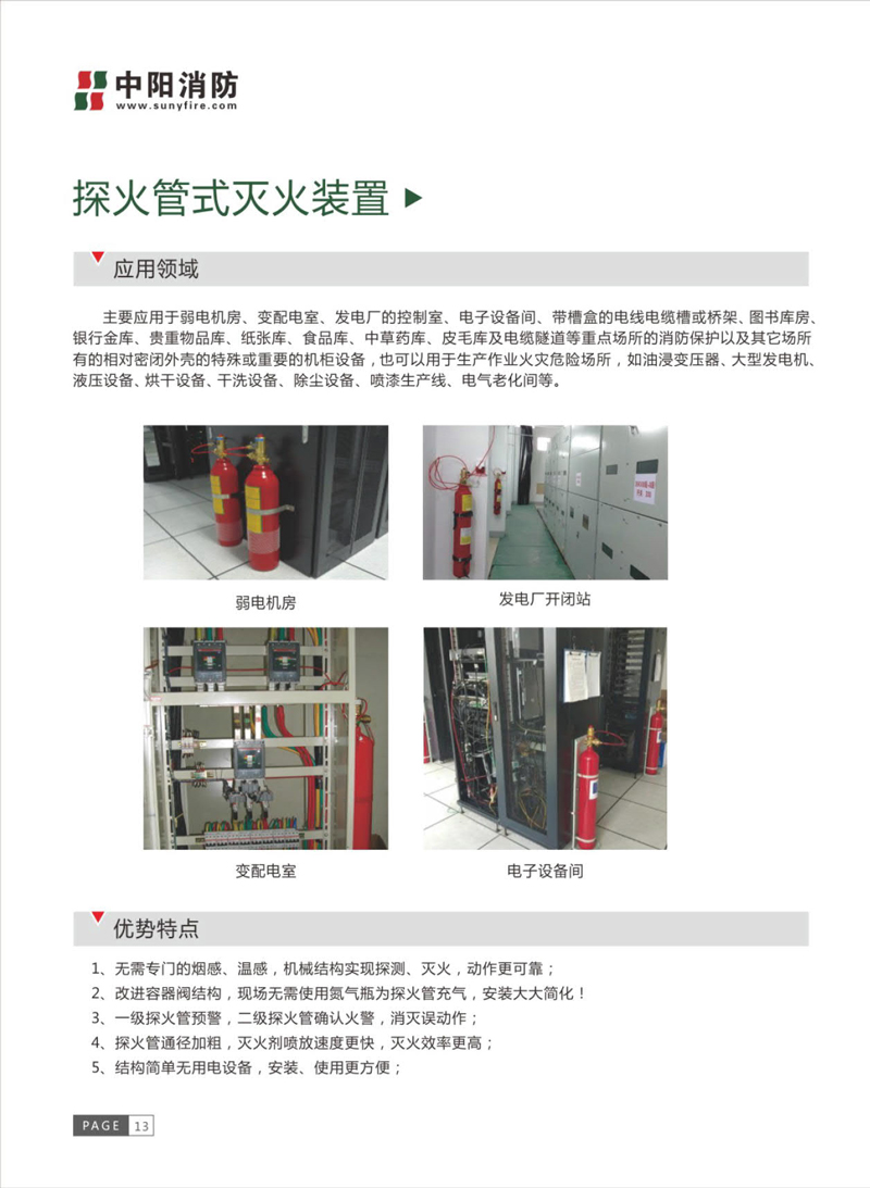 灭火装置执行公安部出台的行业标准《GA1167-2014 探火管式灭火装置》。
